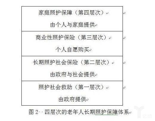 社區居家養老服務體系建設的核心之一就是為老年人建立一個長期照護保障體系。通過外國比較及對我國實際情況的研究,未來我國老年人長期照護保障體系的基本框架應該是由四個層次構成(見圖2)。